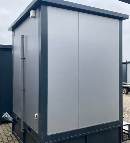 Configuração: Cabine dupla de 2 x 2 metros com possibilidade de equipamento em WC com reservatório de retenção ou em duche, de acordo com as suas necessidades.